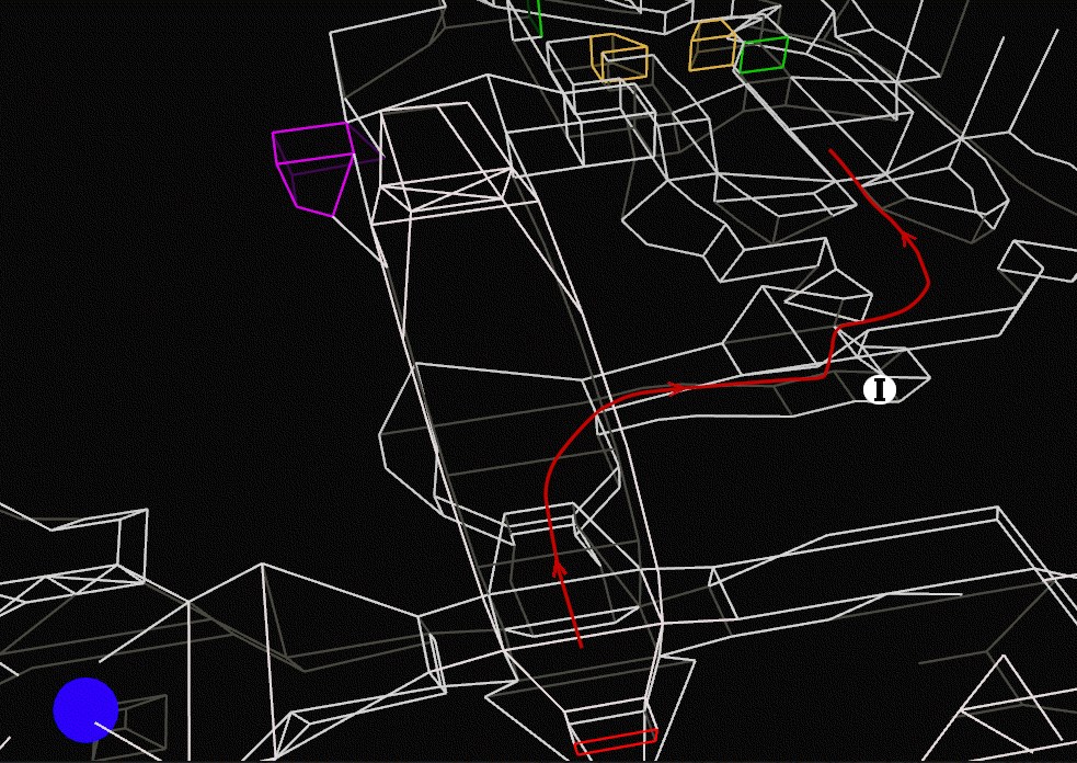 prima delle porte blu, gialla e rossa sono collegate da un labirinto di