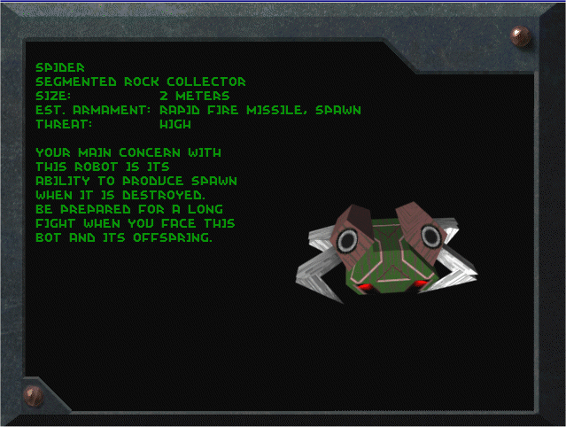 Armamento: Missili a fuoco rapido, genera robot del tipo Spawn.