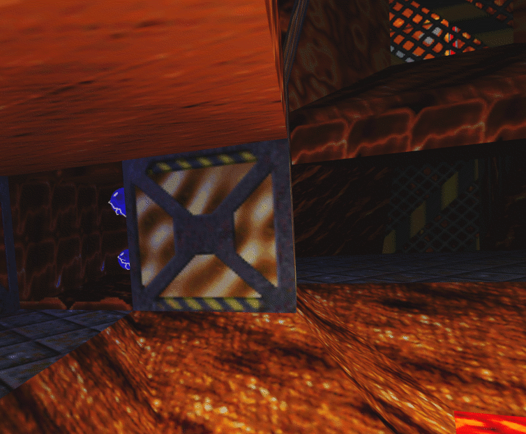 Dalla zona di ingresso nel livello, passiamo dalla porta rossa che vediamo sul soffitto e rientriamo nella sala del Boss. Attraversiamo in fretta la cascata di lava di fronte, restando alla stessa altezza e tenendo la sinistra.