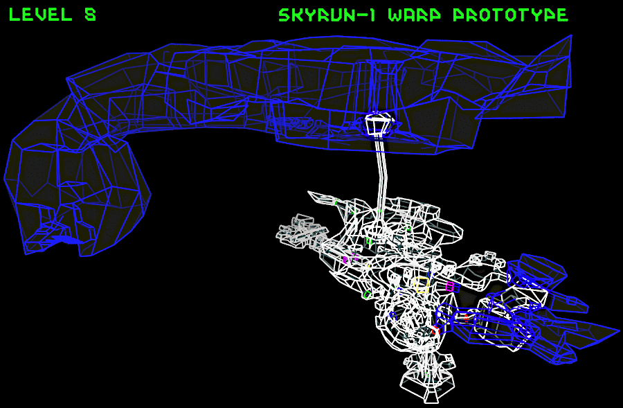 Un tunnel laterale risale verso un terzo tunnel ad anello, piccolo e dalla geometria bizzarra. Qui c'è il cubicolo con la Full Map (figura seguente). Per ora non si riesce neanche a rilevare, ma si apre quando prendiamo la chiave blu.